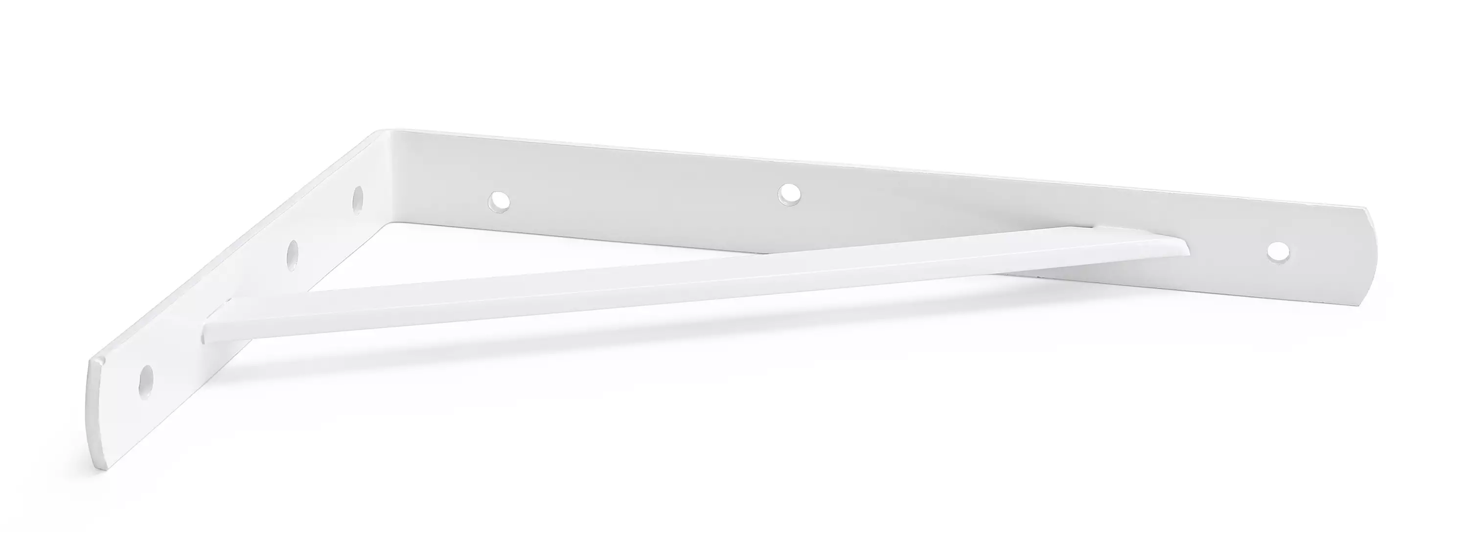 Stålhyllkonsol. Tjocklek 3 mm och bredd 28 mm. - färgalternativ: vit och galvaniserad - klarar en beräknad belastning på 100 kg