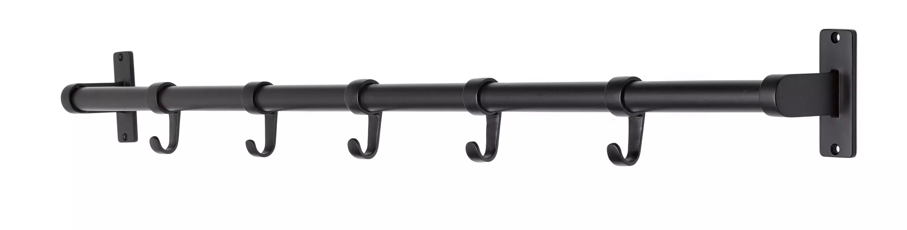 Traditionell 5-krokig klädhängare med modern design - Målat trä i svart, krokar av zink/silver - Passar för hallen, klädkammaren, sovrummet etc. - Bredd 560 mm - Bakgrundshöjd 73 mm...