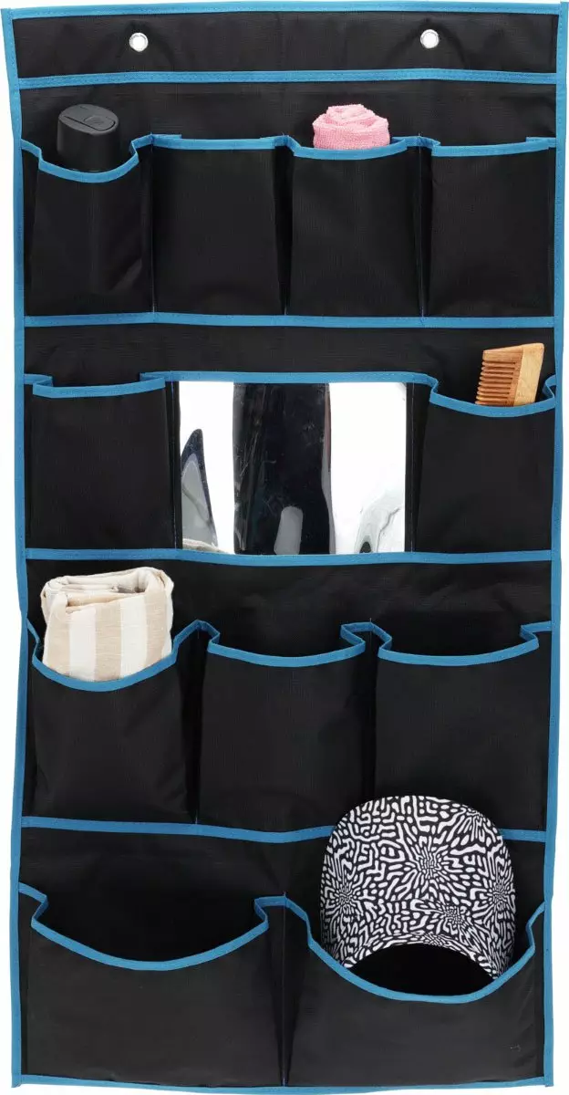 - mångsidigt förvaringssystem för camping- och fritidsförhållanden - med 11 förvaringsfickor i olika storlekar får du gott om plats för alla dina viktiga saker - designad för användning i exempelvis campingtält, förtält eller husbil/bil, men passar även bra hemma, i stugan, etc. - kompakt och rymlig: produkten är 45 x 90 cm stor och tar inte mycket plats men erbjuder ändå gott om förvaringsutrymme - utrustad med en praktisk spegel - tillverkad av 600D Oxford-polyester, känd för sin styrka och hållbarhet - PU-beläggningen gör den vattentålig, vilket gör den utmärkt för campingförhållanden - mått: 45 x 90 cm - inkluderar spegel (ta bort skyddsfilmen från spegeln) - material: 600D Oxford-polyester - PU-belagd (vattentålig) - vikt cirka 325 g