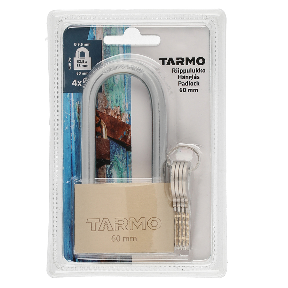 Låsramens storlek 60 x 18 x 42 mm. Balkens diameter 9,5 mm. Balkens inre mått 32,5 x 63 mm. Bronsram och -cylinder. Balken är av härdat stål. Bronsplattor och rostfria fjädrar. Inkluderar 4... Läs mer