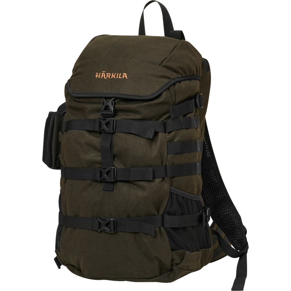 Härkila Metso 2.0 -ryggsäck - tillverkad av mjukt och mycket tyst ulltyg - integrerat gevärsfäste med avtagbart gevärsskydd: båda händerna förblir fria, men vapnet hålls snabbt tillgängligt - utmärkta bäregenskaper - behagligt, tyst tyg - membranväv: helt väderbeständig - volym 36 liter - framsidan har ett elastiskt sträckband för att fästa lösa föremål - på sidorna av ryggsäcken samt i midjebältet finns Molle-fästen, sidofickor har också kompressionsremmar och stora nätfickor - liten nätficka för till exempel GPS-enhet - ryggsäcken har en snölucka vid öppningen - axelremmarna är ventilerade och bekvämt breda: gevärets vikt placeras mer ergonomiskt
