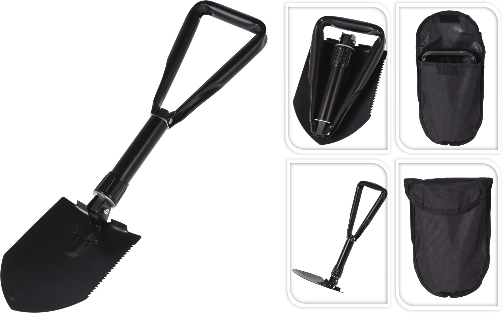- metallisk fältspade med förvaringsväska - hopfällbar - färg: svart - mått utfälld: 60x15x5 cm - mått hopfälld: 255x190x55 mm - förvaringsväska i 600D polyester - vikt 945 g