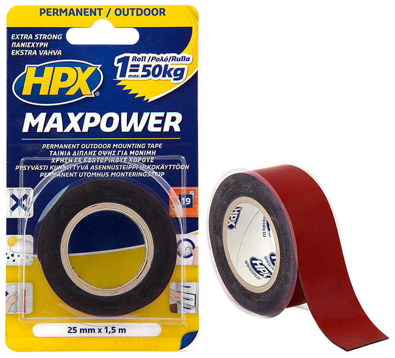 HPX Dubbelhäftande krafttejp 25 mm x 1,5 m