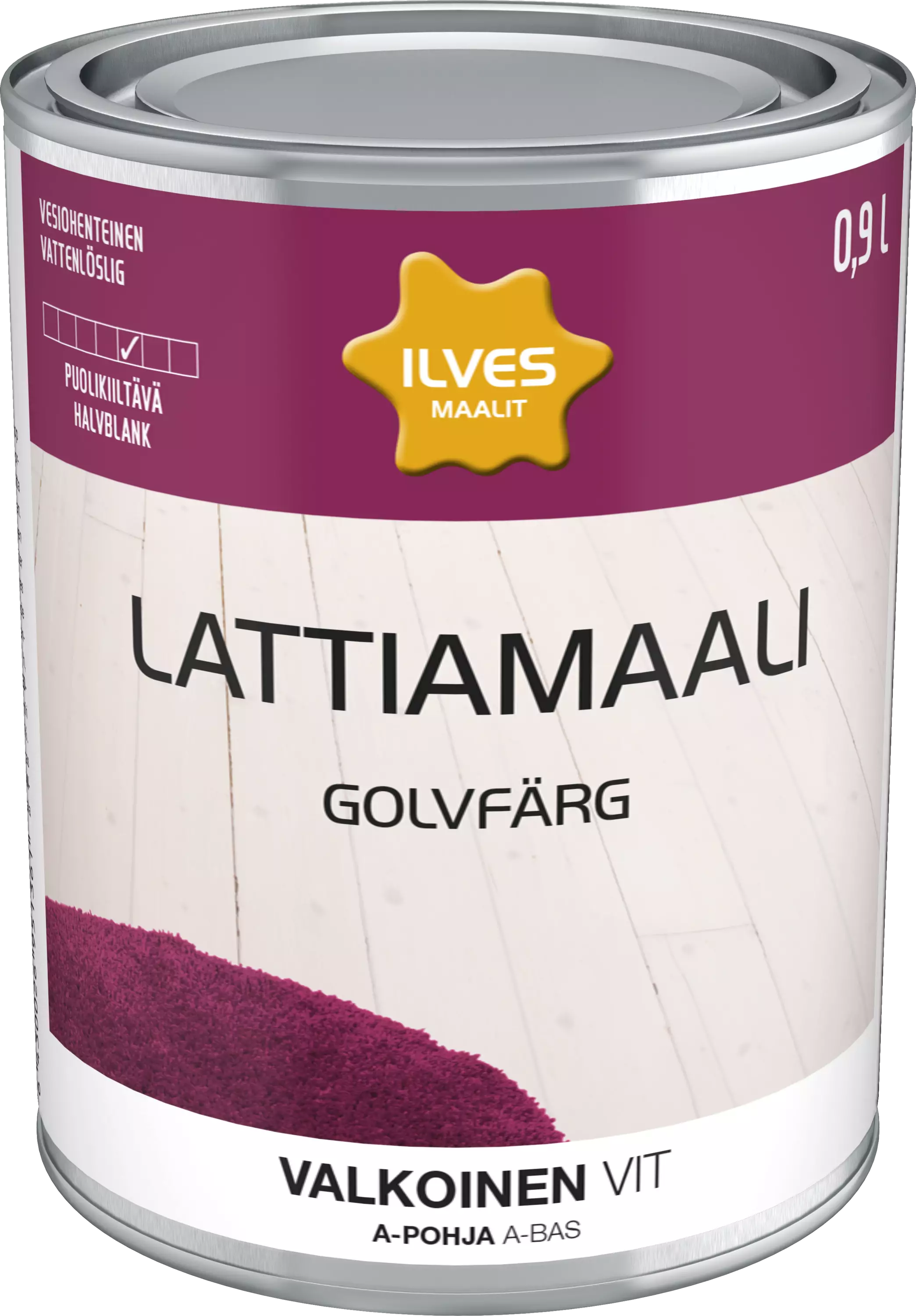 Vattengjuten, glansig, 1-komponents färg, som lämpar sig för målning av betong-, tegel-, puts- och träytor inomhus. Användningsområden inkluderar golvutsatta ytor i bostäder, affärer och lagringsutrymmen, samt källare och trappor. Lämpar sig också för underhållsmålning av golv som tidigare behandlats med alkyd- eller epoxifärg eller lack.