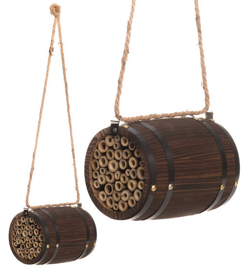 Tunnformad insektshotell som erbjuder fördelaktiga insekter en plats att bygga bo och en säker plats att övervintra. - inkluderar upphängningssnöre - mått: 15 x 18 x 15 cm - material: cederträ, bambu.