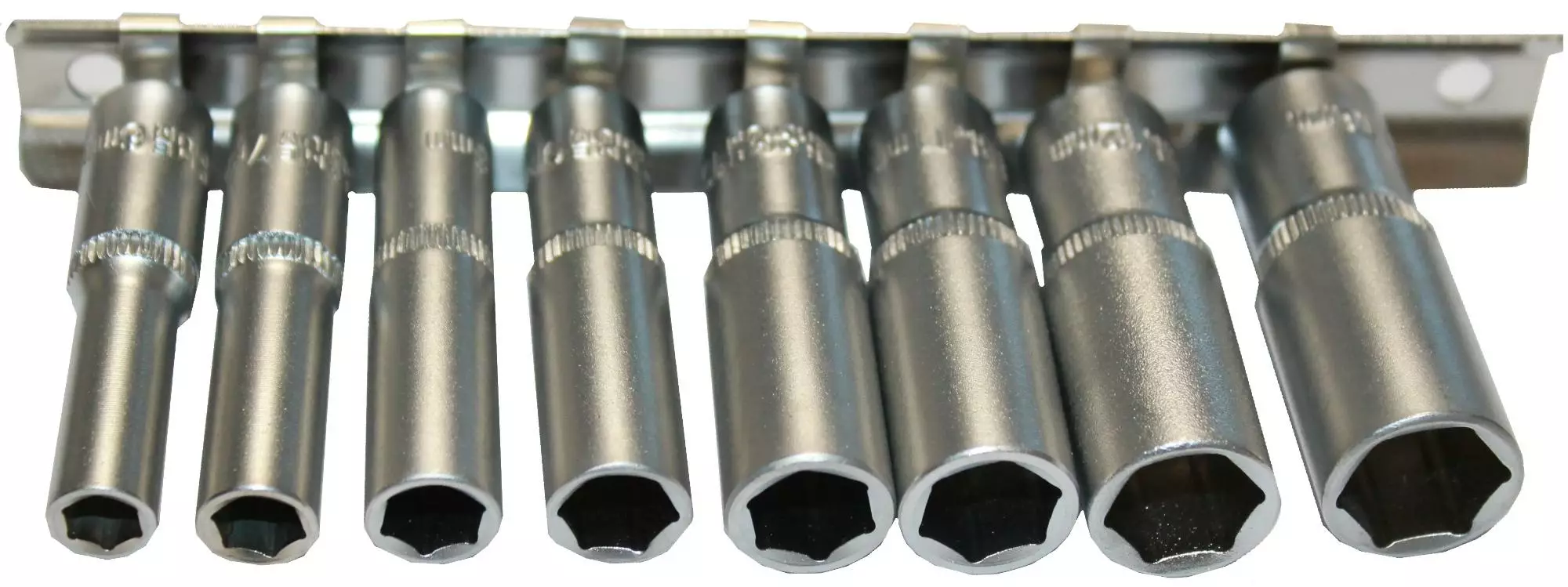8-delars. 1/4" Storlekar: 6, 7, 8, 9, 10, 11, 12 och 13 mm Längd 50 mm