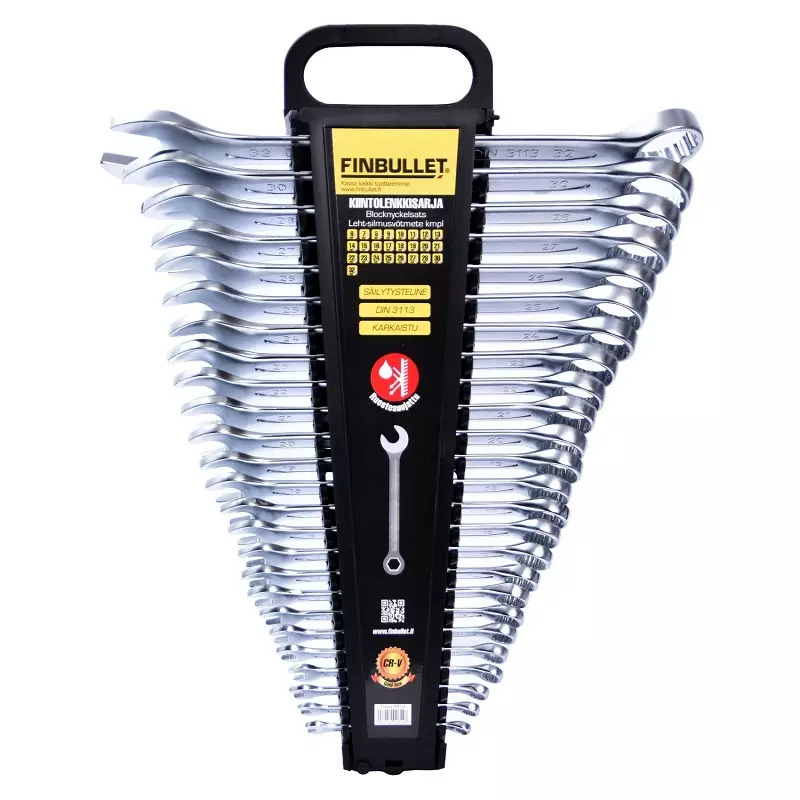 25-delad insexnyckelsats med förvaringsställ. Nycklarna är gjorda av härdat och rostskyddat Cr-V-stål och har en matt yta. - innehåller storlekar 6, 7, 8, 9, 10, 11, 12, 13, 14, 15, 16, 17, 18, 19, 20, 21, 22, 23, 24, 25, 26, 27, 28, 30 och 32 mm - DIN 3113-godkänd
