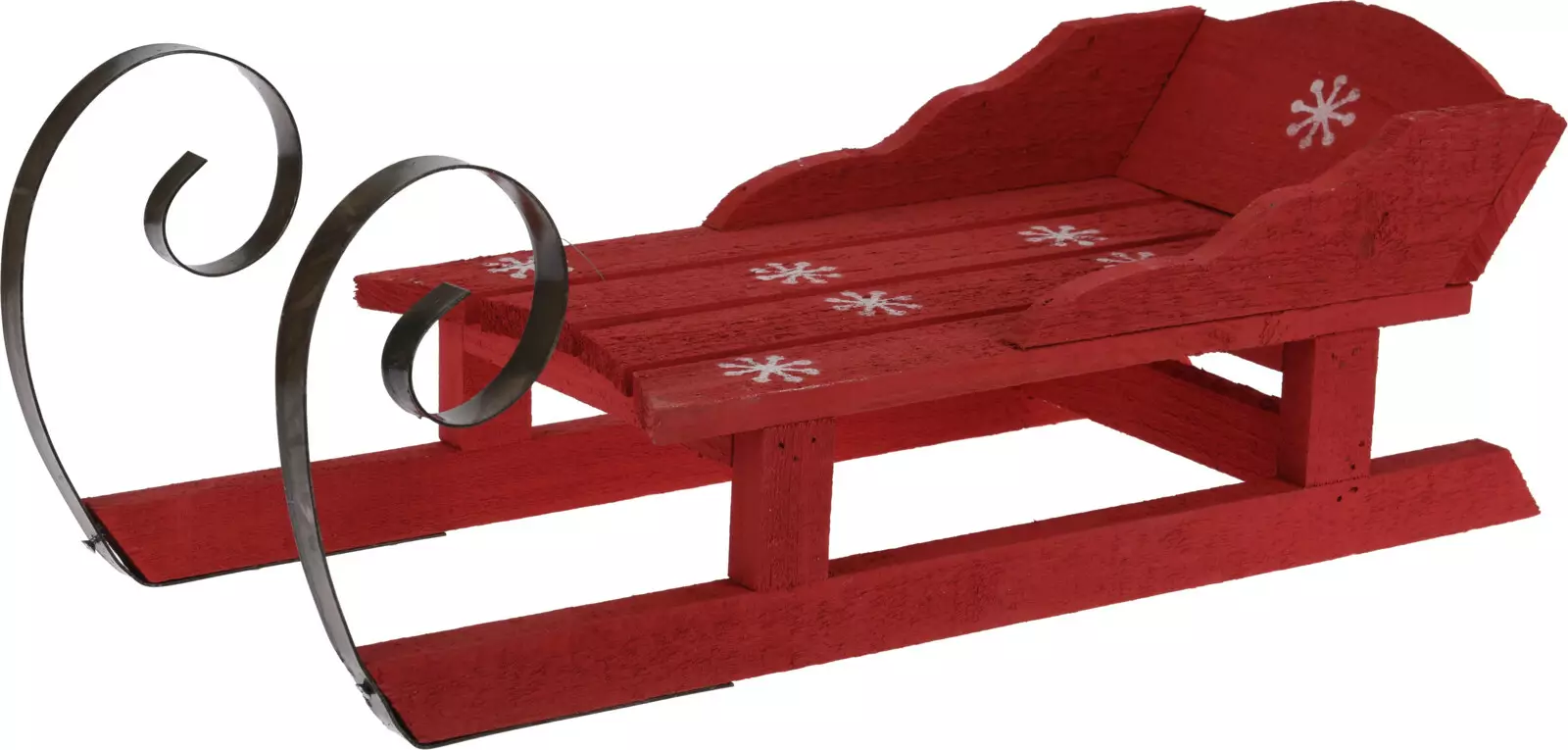 röd släde för dekoration och prydnad - material: trä, metall - längd cirka 40 cm