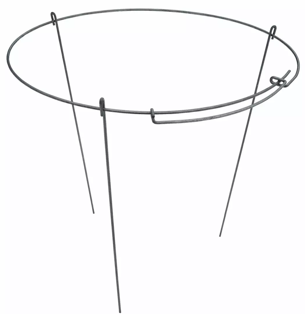 - Rund metallisk buskstöd- Justerbar diameter 60-80 cm- Hela stödet låser sig mycket väl runt böjens öglor och behåller den inställda diametermåttet- Samma stöd fungerar under hela buskens tillväxt- Benens längd 75 cm- Tillverkat av 6 mm galvaniserad ståtråd- Inga verktyg behövs för uppsättning- Buskstödet är nästan osynligt installerat i busken