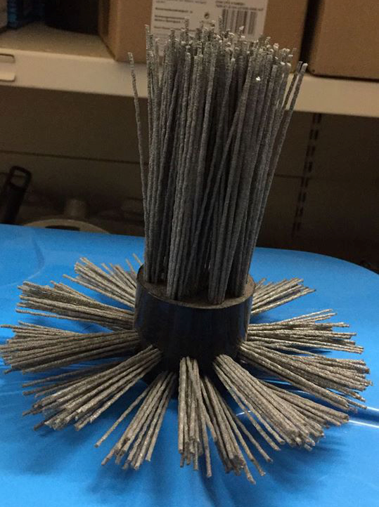 För rengöring av skorstenar med borrmaskin. Varvtalen är 1500-3000 r/min. Med rotationen sprider borsten ut sig. Tillverkad av silikonkarbid. Rengöringseffekten är som bäst när borsten trycks lätt mot ytan och borsttopparna gör jobbet. Mycket hållbar.