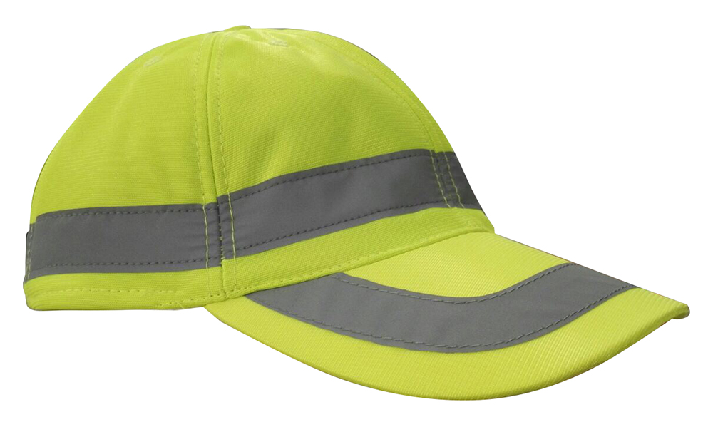 justerbar en storlek vuxen varselkeps - färg: neongul - med reflexer - inbyggda öronlappar - det står Kärppä på Otso-märket, trots bilden