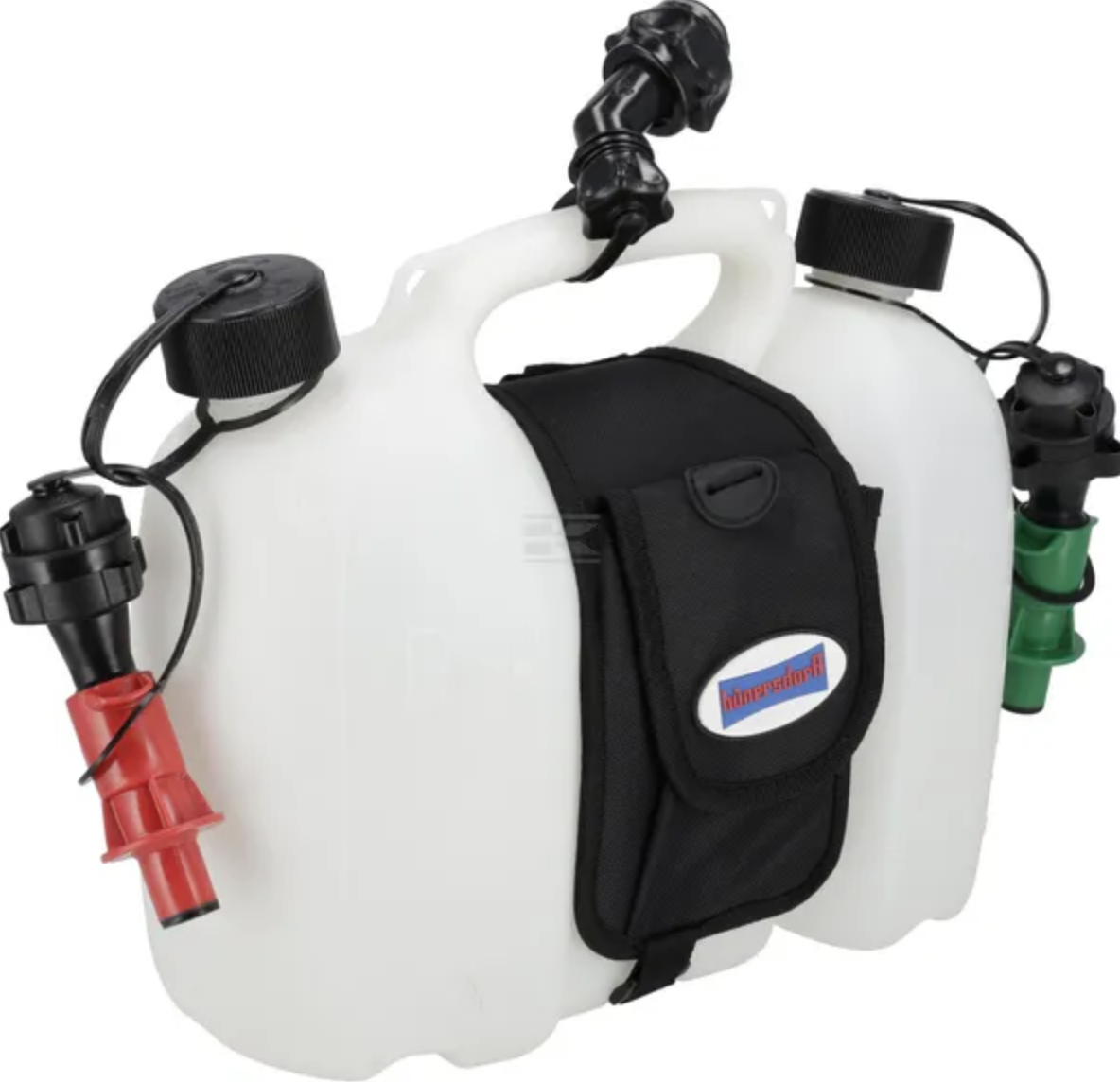 I den högkvalitativa motorsågsdunken finns det två reservoarer på 3 liter och 6 liter - djup 170 mm - höjd 298 mm - bredd/diameter 362 mm - material HD-PE - färg: transparent - vikt 1,46 kg