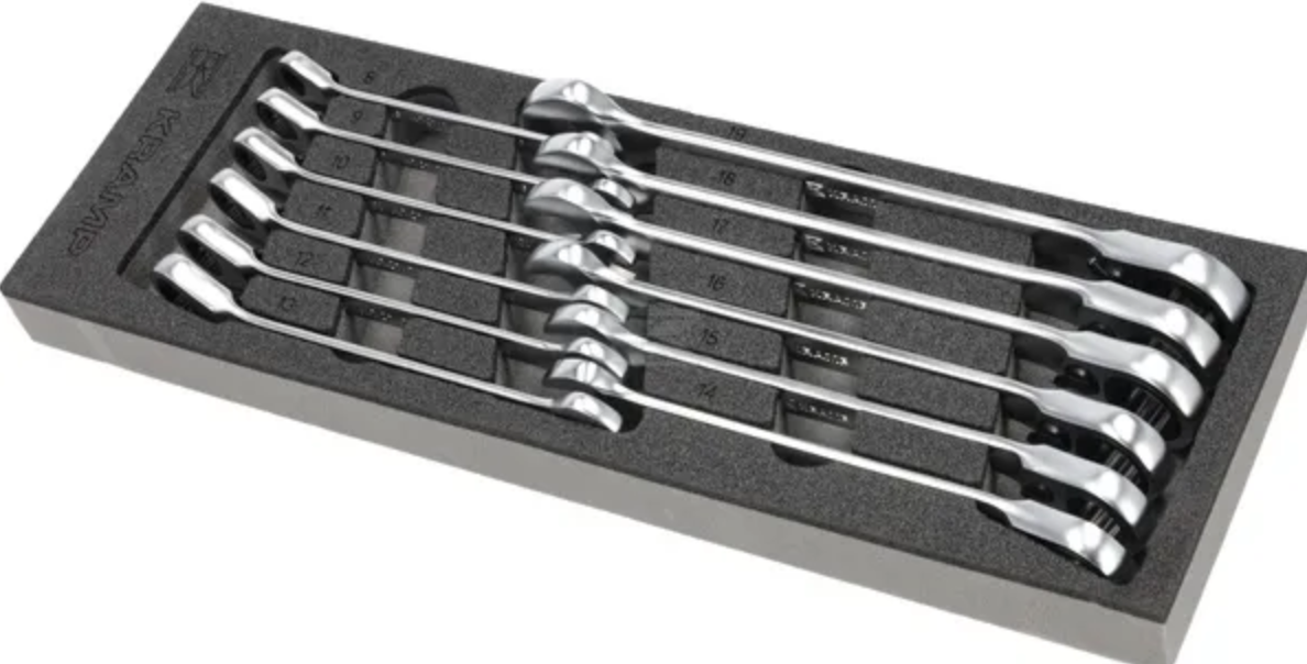 Dessa Kramp-skuminsatser är perfekta för att organisera lådorna i Kramp-verktygsvagnar så att endast de verktyg som faktiskt används finns tillgängliga. - Verktygen placeras tydligt i avsedda fack och skyddas från skador- Tydligt synliga konturer av verktygen gör det lättare att återplacera dem i rätt fack- Olika nivåer gör det enklare att nå verktygen- Olja- och fettbeständig- Denna skuminsats passar i Kramp-verktygsvagnen- Enkel att rengöra med vatten, tvål och en hand-/nagelborste - inkluderar storlekar 8-19 mm