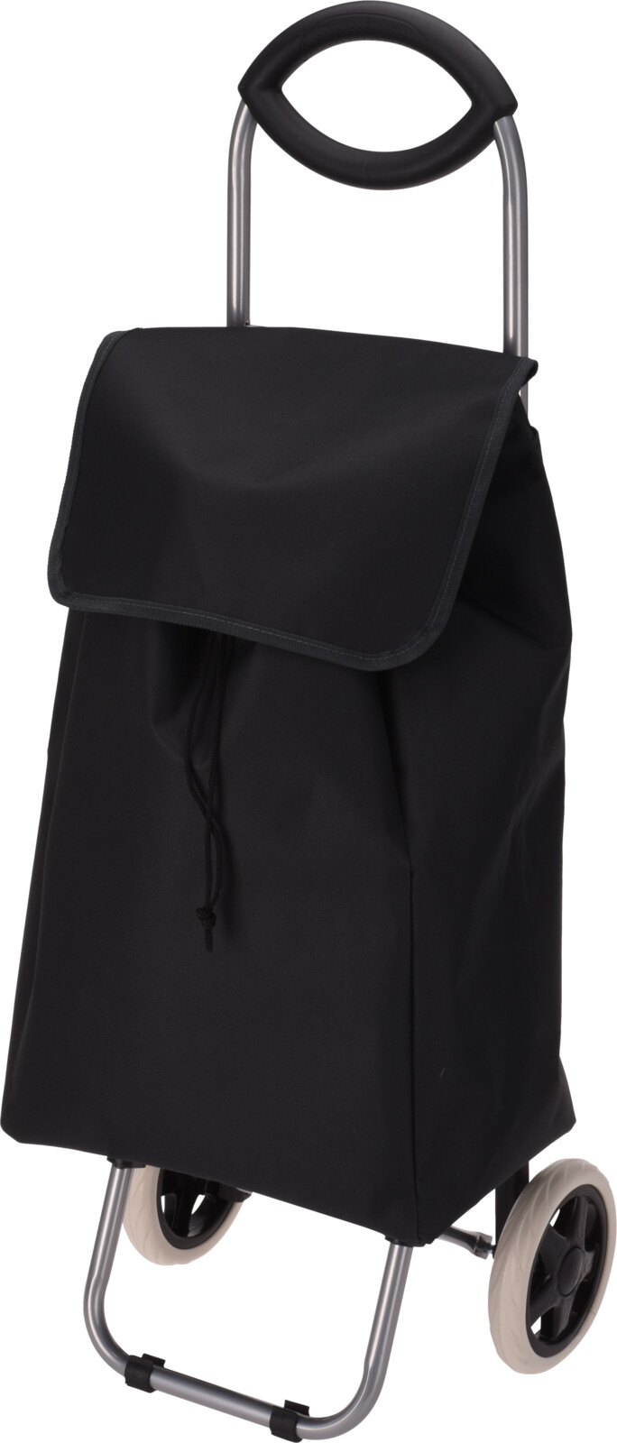 - stor shoppingväska med hjul och handtag - färg: svart - volym 30 liter - stålkonstruktion - väska av hållbar OXFORD polyester 600D - vattentåligt och rivtåligt material - ihopvikbar - två stora hjul och stativ - maxbelastning 22 kg - ramens mått: 92 x 35 x 28 cm - väskdelens mått: 53 x 32 x 20 cm