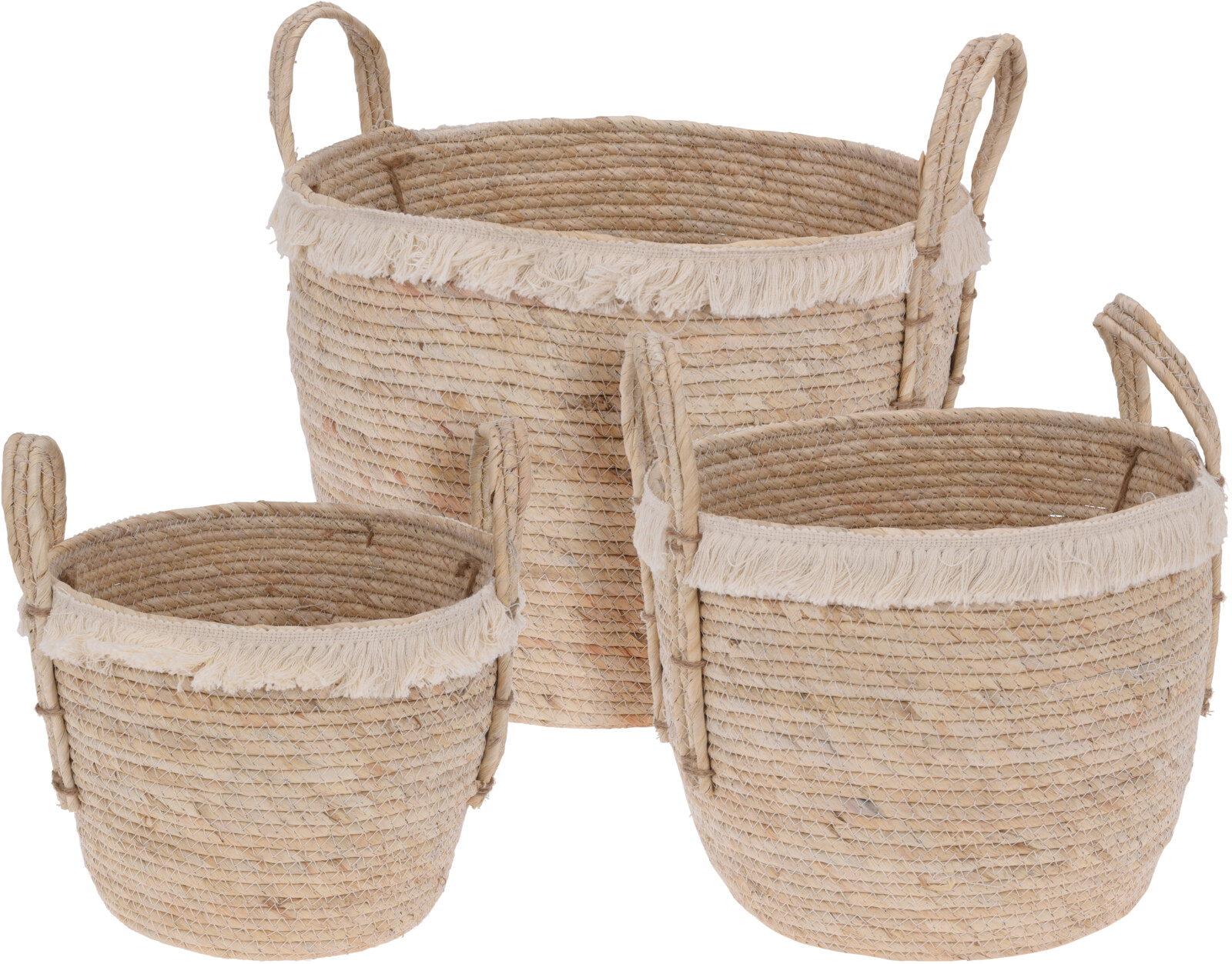 - ljus flätad korg med fransdekoration - diameter 23 cm - höjd 20 cm - den minsta korgen på bilden