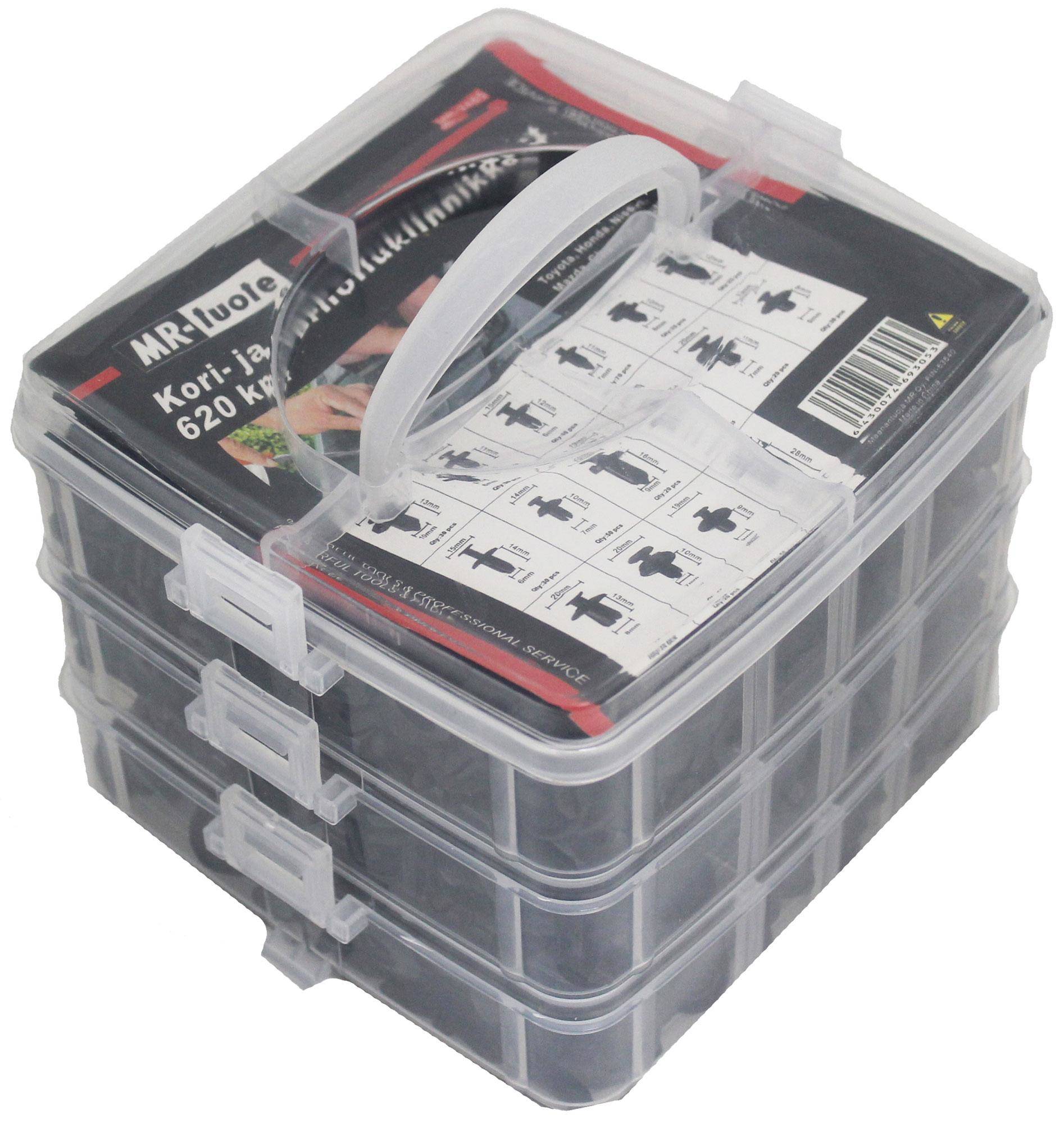 Korg- och klädfästelement - 620 st/fp - 16 olika fästelementmodeller som passar bland annat Ford, Chrysler, Toyota, Honda, Nissan, Mazda, Chevy, Jeep, GM - material av högkvalitativ nylon