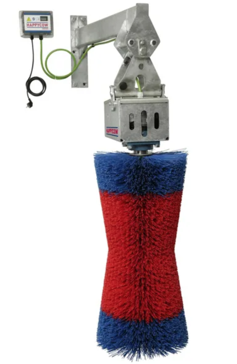 - borsten har framåt och bakåt rörelse som borstar djurets kropp från huvud till svans - monteras på vägg eller stolpe. De horisontella borstarna förhindrar att djuret hoppar på borsten - borsten slits jämnt, då den kan fästas på båda sidor - apparaten stänger av sig automatiskt, sensorn kontrollerar att svansens långa hår inte trasslar in sig i borsten - effekt 550W - 230V - bredd 49 cm - höjd 190 cm - vikt 105 kg