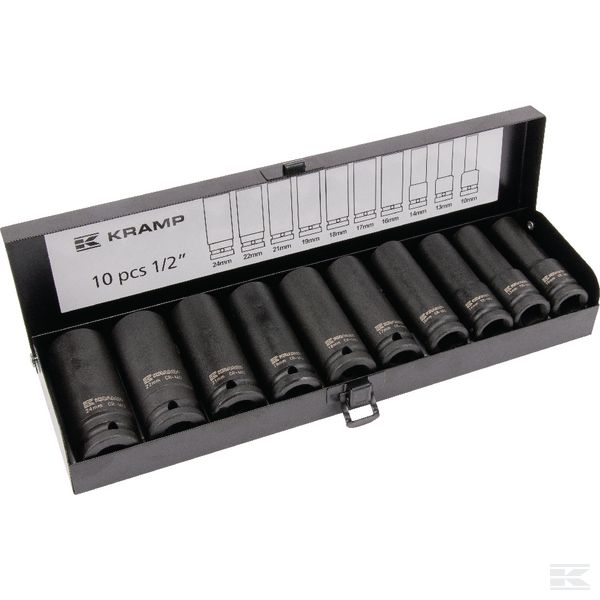 Professionell 10-delad kraftmomentsats som innehåller långa hylsor tillverkade av krom-vanadinstål och en 1/2" spärrnyckel. Lämplig för alla typer av tunga arbeten. - Tydligt organiserad, robust... Läs mer