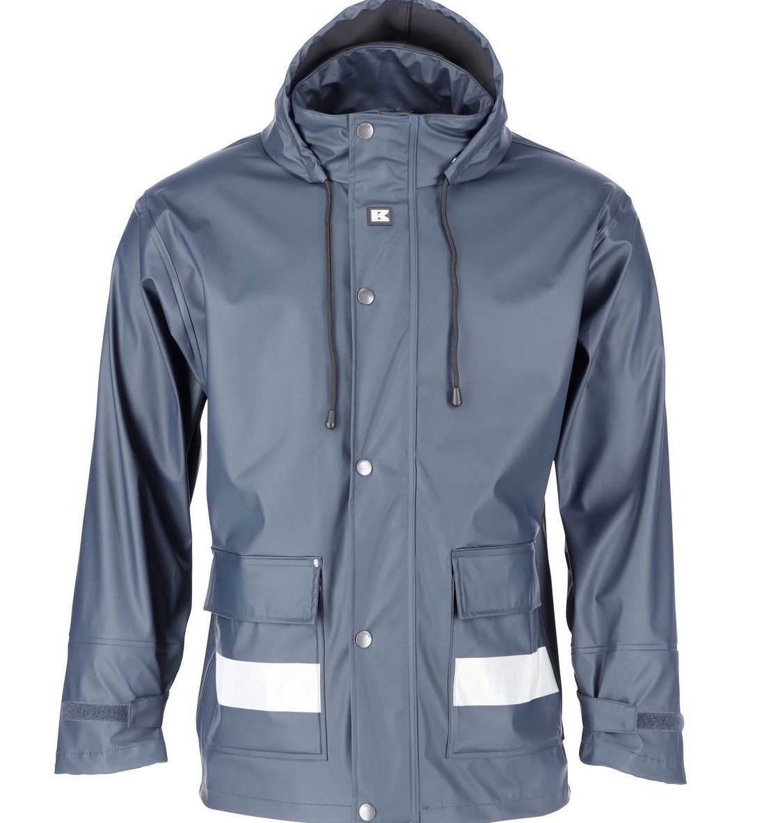 Regnjacka Kramp Protect - färg: marinblå - förstärkta och dubbelsömda sömmar - YKK dragkedja - reflexer fram och bak - mjukt och bekvämt material, kardborreband vid ärmsluten och fickor - 100% polyuretan, foder: 100% polyester - ISO-standard EN 343 - vattentäthet: 5000 mm vattensäcolumn - unisex-modell