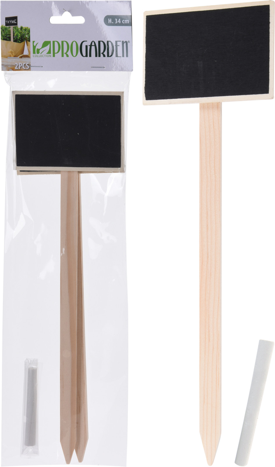 etikettmått: 7 x 10 cm - höjd: 34 cm - förpackningen innehåller 2 namnplattor och krita
