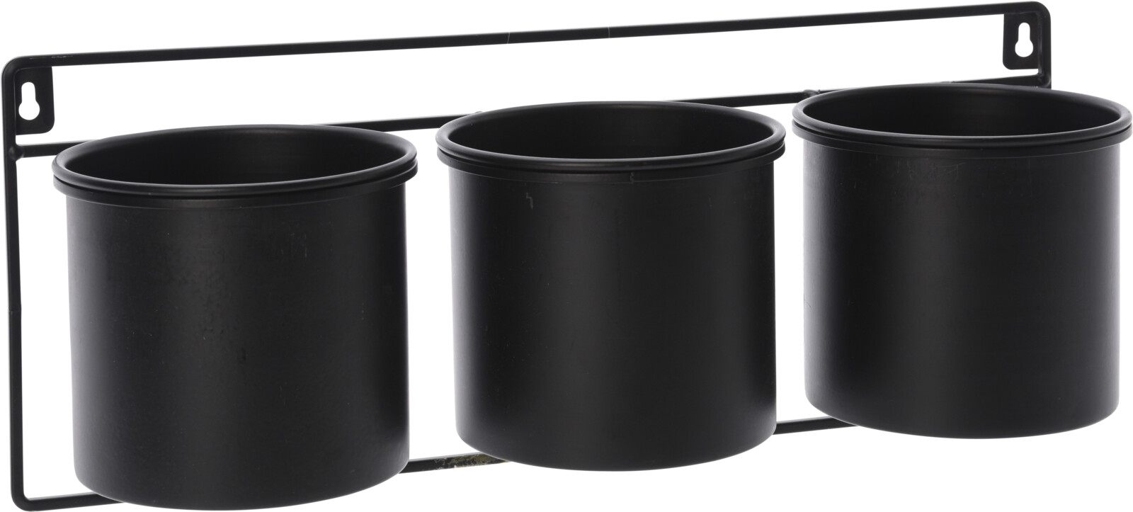 - 3 svarta metallkrukor med väggställ - mått: 46x15,5x18,2 cm - krukans storlek: 14x12 cm