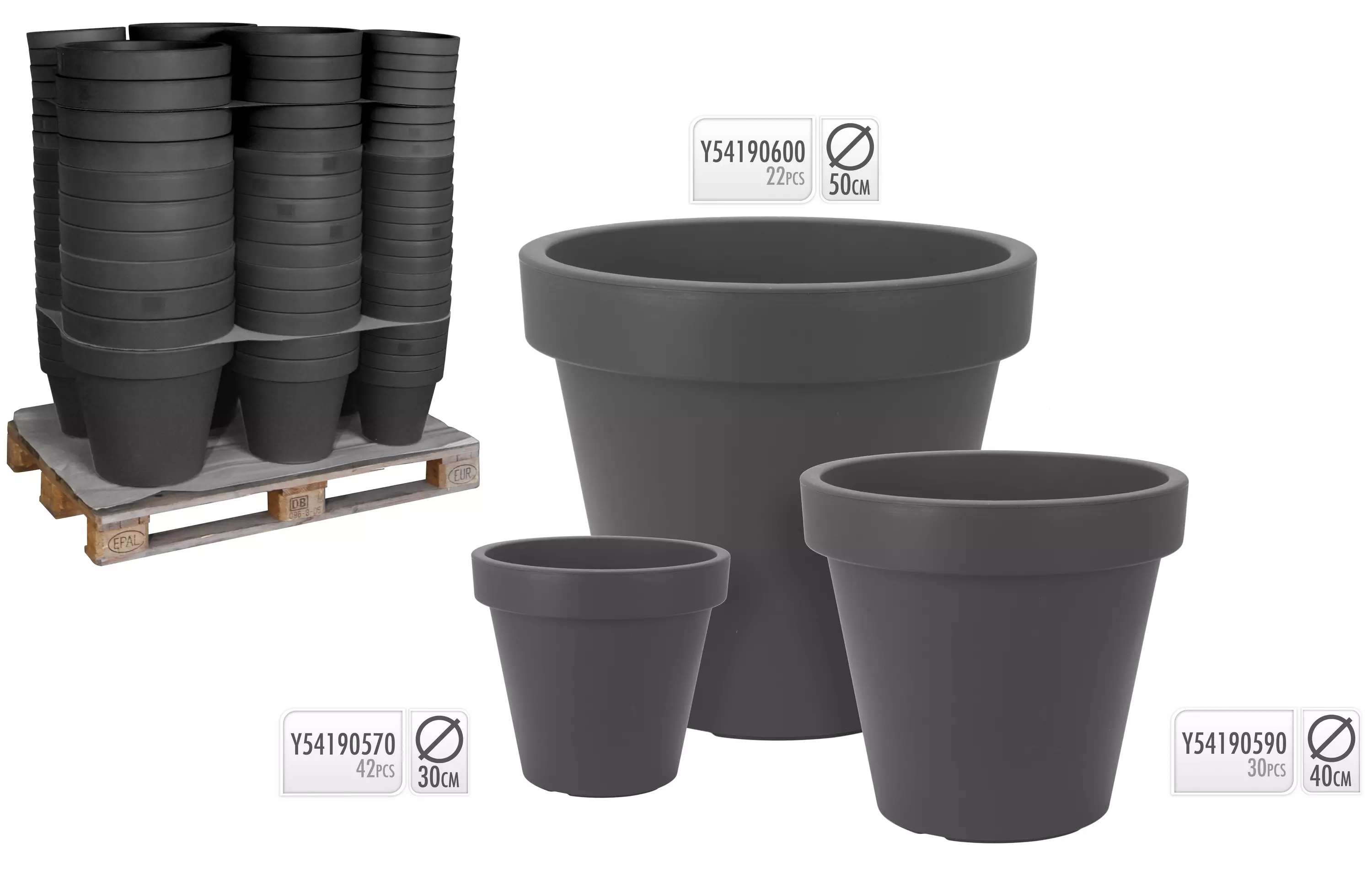 Fina krukor för inomhus- och utomhusväxter - den breda kanten ger ett bra grepp när du flyttar, och ser även snygg ut - lätt men hållbart material: fungerar bra med stora planteringar, där jorden kan bli tung - färg: antracit (mörkgrå) - material: plast Finns i storlekar: - Ø 30 cm, höjd 26 cm, botten-Ø 18 cm - Ø 40 cm, höjd 35 cm, botten-Ø 24 cm - Ø 50 cm, höjd 45 cm, botten-Ø 29,5 cm