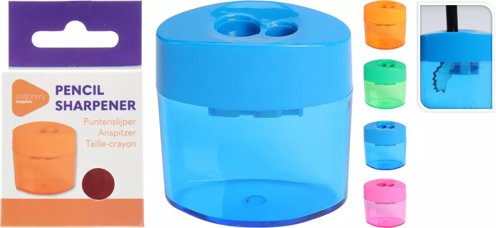 Penna vässarska med genomskinlig behållare - mått 8 x 5 x 2 cm Variation av produkt: färgval är inte möjligt i webbshoppen - en av färgerna från bilden. Önskemål kan lämnas i meddelandefältet under beställningen.