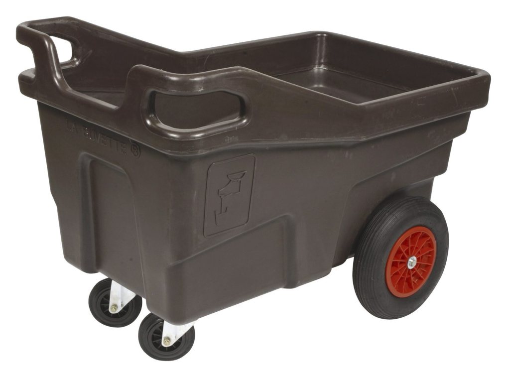 Lätt att transportera tack vare två stora och två svängbara hjul - Integrerat handtag - Polyeten med förstärkt kant - Mått (l x b x h): 120 x 75 x 91,2 - Volym: 340 l