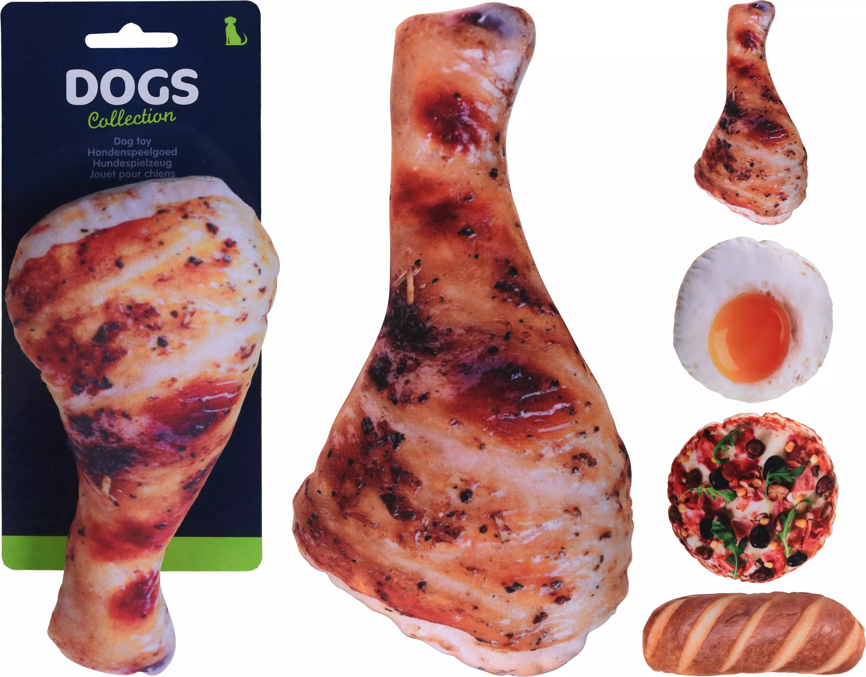 Hundens plyschleksak med pip - i sortimentet finns olika läckerheter, du får en slumpmässig vid beställning - storlek ca 18 cm - mjukt tyg