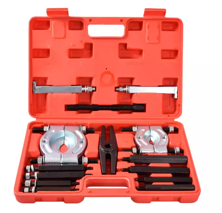 Utdragningsverktyg för lager 50 - 75 mm för lager. • 1x 50 mm lagerutdragningsklaff • 1x 75 mm lagerutdragningsklaff • 1x 150 mm utdragarkropp • 1x 160 mm mittskruv för utdragningsverktyget • 4x 100 mm förlängningsskruvar • 4x 125 mm förlängningsskruvar • 2x 115 mm L-formade ben