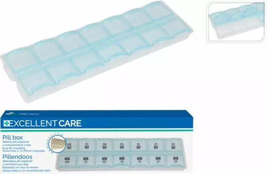 Denna tablett-/medicinförvaring är designad för att enkelt organisera läkemedel. - tillverkad av hållbar plast (PP) - flera fack för sortering och dosering av tabletter eller kosttillskott