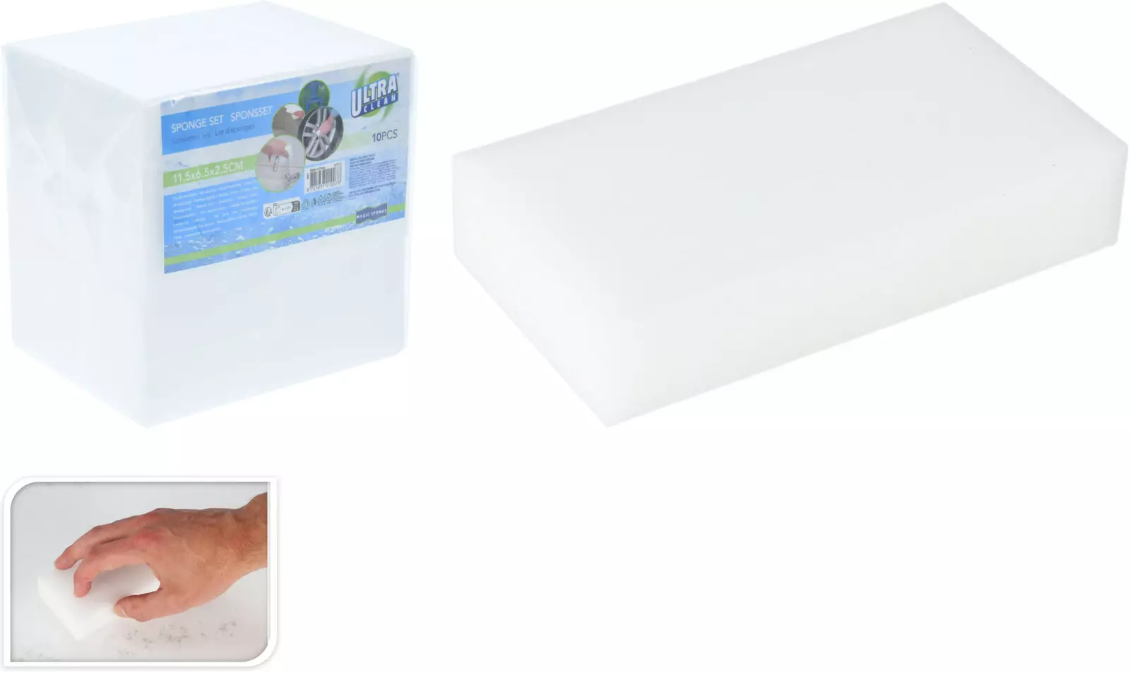 - vit magisk svamp som enkelt tar bort olika svåra fläckar- storlek på en svamp 11,5x6,5x2,5 cm- förpackningen innehåller 10 svampar