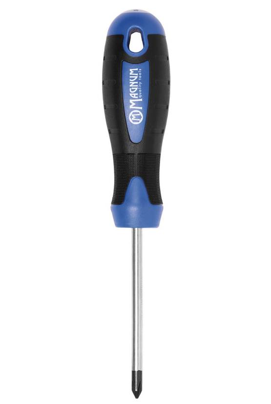 Magnum skruvmejsel med Phillips-spets - ergonomiskt grepp med mjukt ytskikt för ett bra grepp - högkvalitativ kromvanadium stål - magnetspets - upphängningsögla