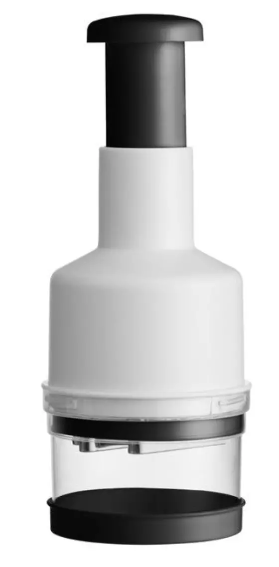 Hacka lök, örter och grönsaker enkelt och snabbt. Handdisk. Bredd8,5 cm Djup8,5 cm Höjd21,5 cm Vikt0,17 kg Färgvit/svart/genomskinlig Materialpolypropen, polystyren, rostfritt stål
