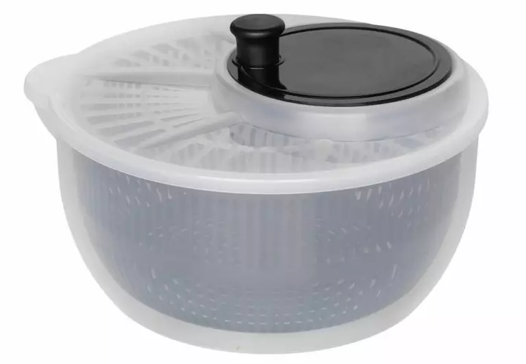 Hemligheten bakom rena men krispiga sallader är en salladsskrapa. Genom att centrifugera salladsbladen får man dem effektivt torra och bevarar deras krispighet. Volym 3,75 L. Tål maskindisk. Bredd24 cm Djup25 cm Höjd11 cm Vikt0,39 kg Materialpolypropen Färg: svart eller vit (färg väljs slumpmässigt beroende på lagersaldo, sortimentsprodukt)