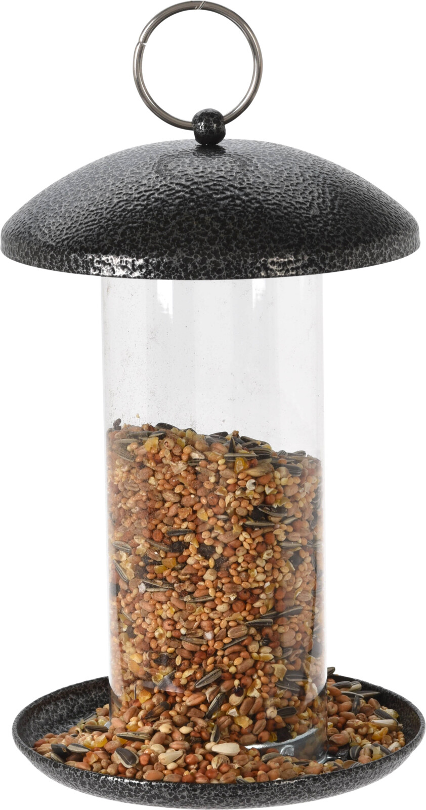 Stilren fågelmatare / fågelbord- genomskinlig- marmorerat metalllock- material: metall/plast- hängkrok inkluderad- mått: 13x13x20 cm- vikt: 0,25 kg