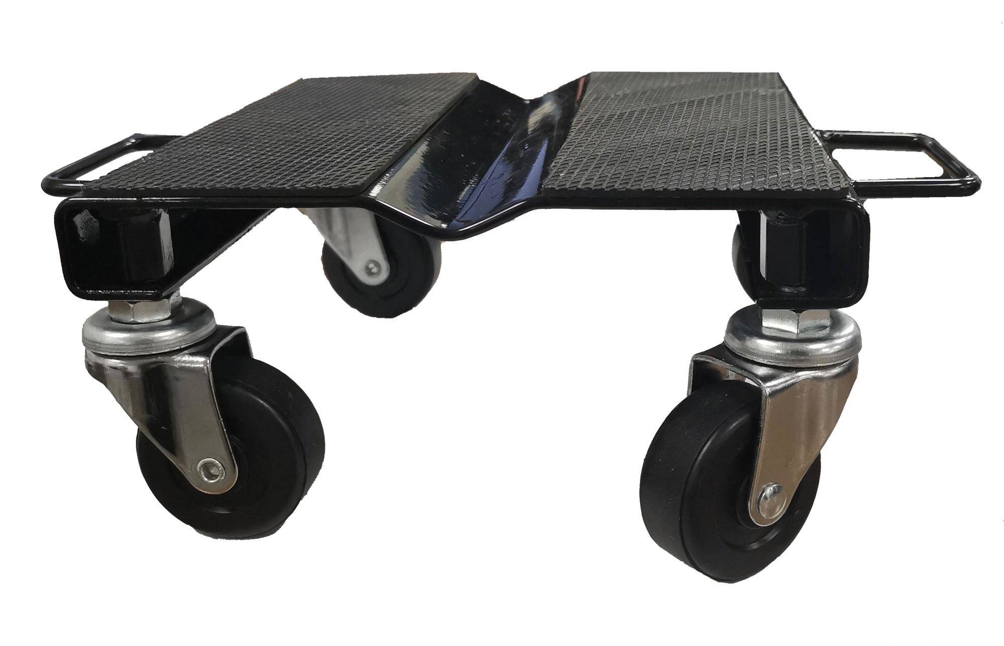 Snöskoterns transportset 3-delar max. 680 kg - bärförmåga 680 kg - material stål + PP (hjul) - plattor 2 x 205 * 205 mm, 1 x 180 * 200 mm - hjul 4 st * 50 mm, roterar 360° - vikt 7,3 kg Praktiskt tredelat transportset, tillverkat av robust pulverlackerat stål. Varje platta har fyra hårda, 360° roterande gummikräppor. Två plattor har spår för skidor och den tredje plattan bär upp larven. Förflyttning av snöskotern för transport eller från plats till plats sker enkelt,och setet passar även för förvaring.
