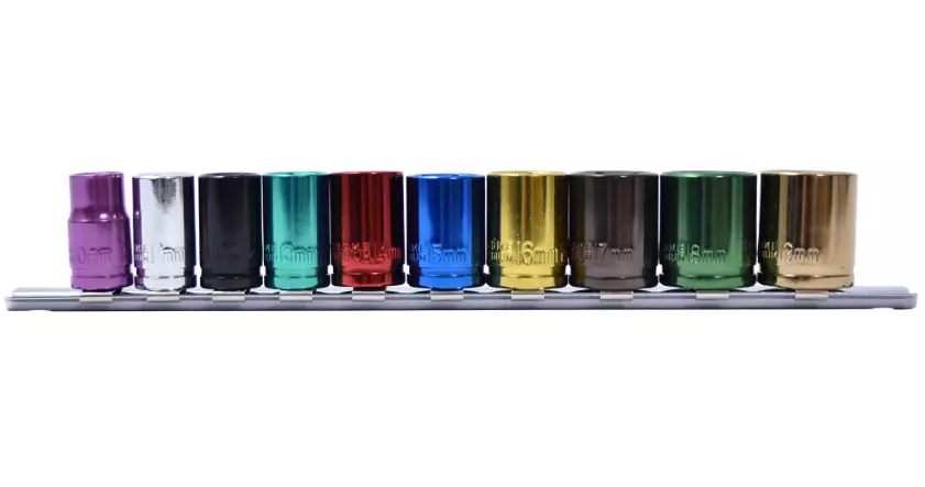 Finbullet Metallhylssats 3/8" 10-19mm 10st Färgglada hylsor