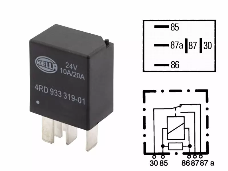 5-polig relä med växelkontakt (87+87a)Typ: Relä med växelkontaktSpänning: 24VAmpere: 10/20ATyp av kontakt: 5-polig