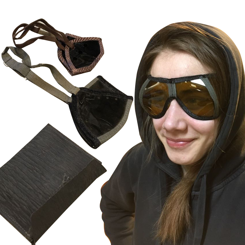 Fällbara solglasögon / skyddsglasögon - Skyddsnivåer är oklara, säljs "för dekoration" - Militärt överskott - Med elastiskt band - Inkluderar förvaringsväska