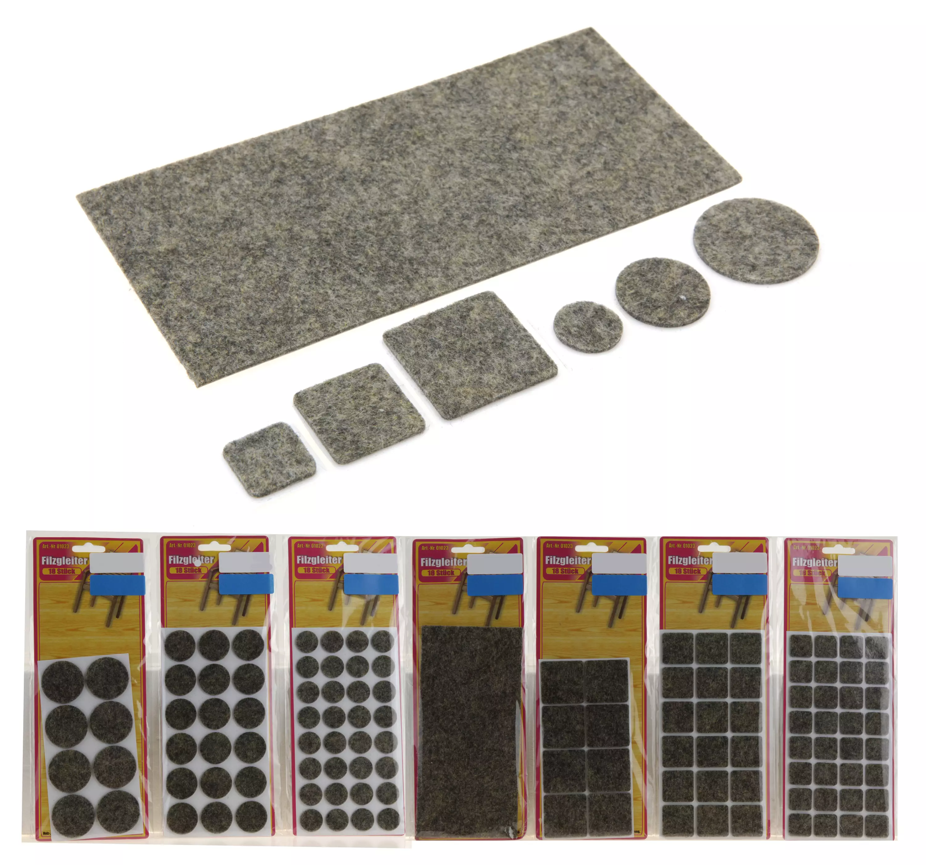 mångsidiga möbelfilttassar, exempelvis för att placera under möbelben för att förhindra repor på golvet - självhäftande baksida - färg: grå - finns i olika storlekar