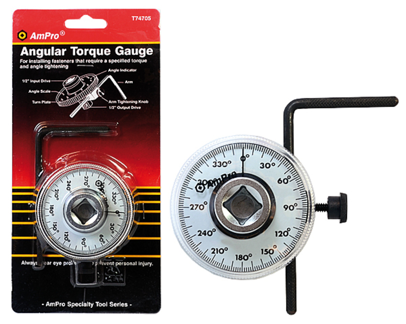 Med en momentvinkel kan du dra åt bultarna enligt angivna grader. 0 grader ställs in genom att vrida indikatorplattan. Skalan är markerad vart 2° och gradnummer vart 30°. Passar till 1/2" spärrnycklar och hylsor. - med låsmekanism - med materialgaranti i ett år