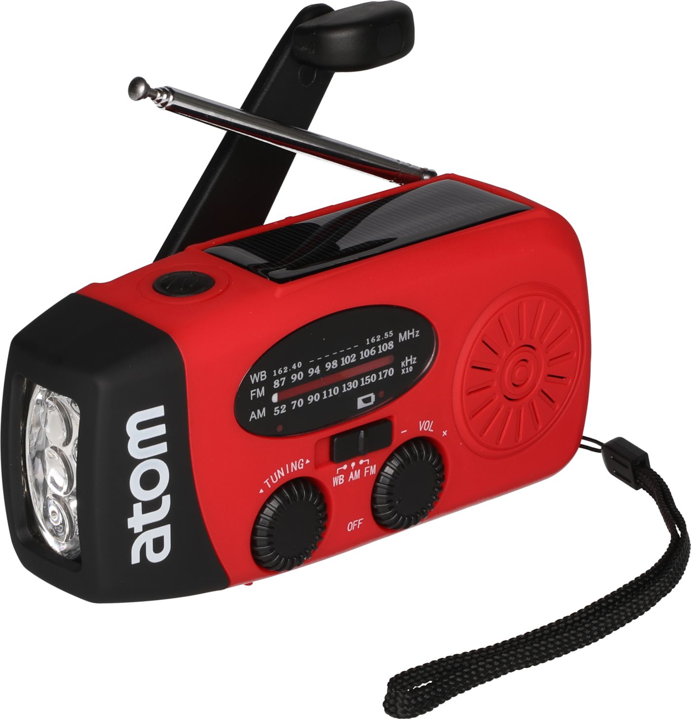 Ström utan el! En utmärkt produkt för stugan, utflykten och hemmet. Radion har 3 klara vita LED-lampor, FM/AM-radio och flera sätt att få ström: vev för att ladda det interna batteriet, solpanel samt USB-port för laddning. Ladda mobiltelefonen i nödsituationer med USB 5V-utgång. Uppladdningbart batteri: 3.7V 2000 mAh Li-ion. Vattentålig. 1 minut vevmotortid stödjer 15 minuters radiolyssnande, 15 minuters konstant användning av ficklampan samt 5 minuters samtalstid. Radion innehåller även en nödsignal som aktiveras genom att trycka på ficklampans knapp i 2 sekunder. Bredd12,50 cm Djup6,00 cm Höjd4,50 cm Vikt0,25 kg FärgSvart/röd Konsumentförpackningens bredd8,00 cm Konsumentförpackningens djup6,00 cm Konsumentförpackningens höjd19,00 cm Konsumentförpackningens vikt0,29 kg