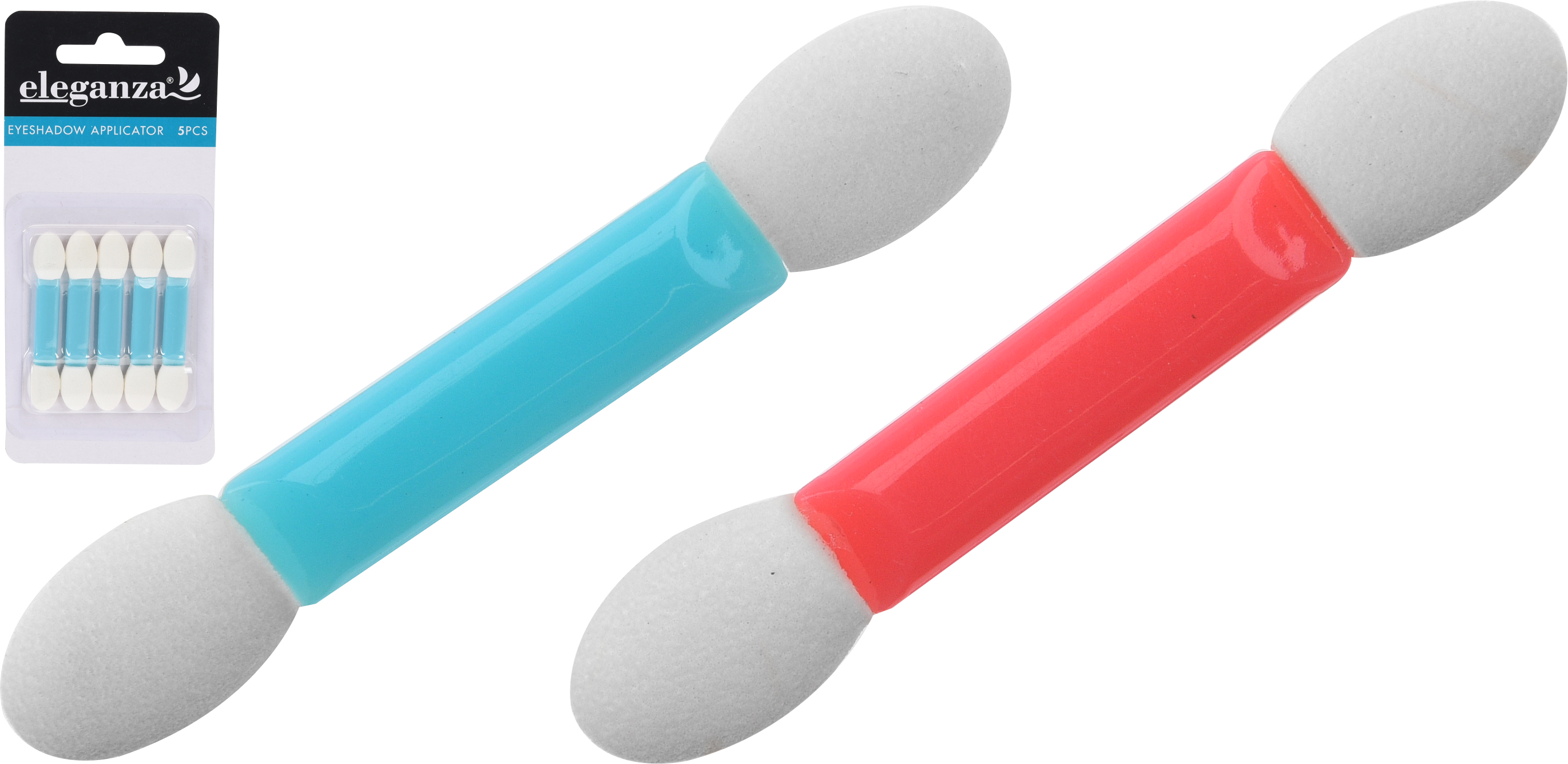 förpackningen innehåller 5 stycken penslar för applicering av ögonskugga - längd 6 cm - finns i 2 färger, varav du får en slumpmässigt vald vid beställning