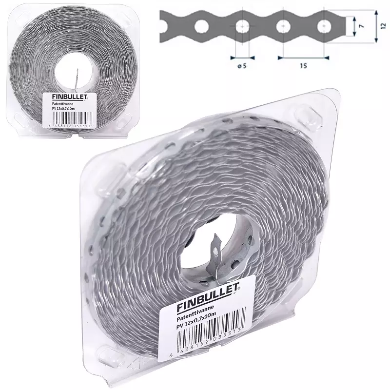 Patentfäste 12 mm x 0,7 mm x 10 m, 5 mm hål