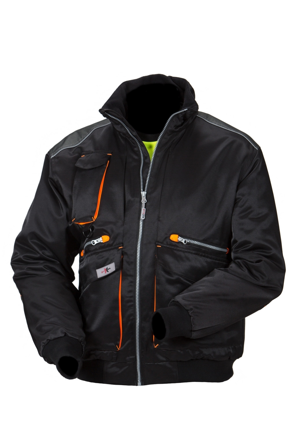 - grå/svart med orange detaljer- 8 fickor, inklusive mobilficka, bröstficka, 2 stora sidofickor med lock, D-ring, 2 med dragkedja sidofickor och bröstfickor- axlar och underarmar är förstärkta med 600D polyester- reflexer framtill och baktill- dragkedjestängning upp till kragen- skön fleece i kragen- muddar och midja med elasticitet Material: smutsavvisande och slitstark beavernylon i 80% polyester och 20% bomull.Värmeisolering 160 g/m2