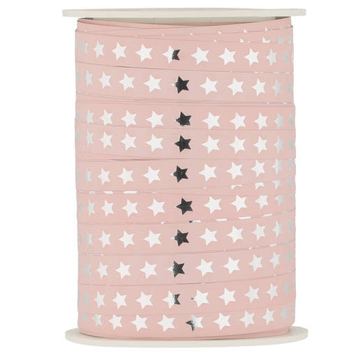 Ljusrosa presentband med silverfärgade stjärnor - 10 mm x 100 m