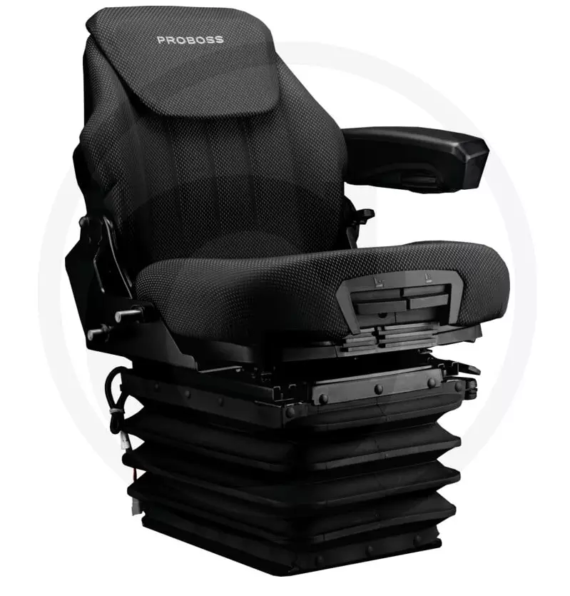 Mer information Kompatibilitet:John Deere Bordsspänning (V):12 Typ av klädsel:Tygklädsel Sätets kontaktknapp:Ja Avstånd mellan skenor (mm):270 Sätebredd (mm):510 Joystick-konsol:Ja Sätevärme:Ja Bälte-/hänsjärnssystem:Valfritt Rotation:Ja Höjd (mm):270 ? 370 Leveransinnehåll:Leveransen innehåller en kontaktknapp för säte och en konsol för armstödet. Konsolen används för att montera armstödet på det nya sätet. På bilden visas en passande armstödskonsol för detta säte, ingår inte i leveransen. Tekniska specifikationer:• Luftfjädring 12 V kompressor • Långa fjädrar • Steglös höjdjustering • Fram- och bakjustering • Justering av ryggstödets lutning • Mekaniskt ländryggsstöd • Justerbara Comfort Plus-armstöd • Justerbar ryggstödsförlängning • Rotation max. 20° åt höger/vänster • Sätebredd 510 mm • Sätehöjd 270–370 mm • Vikt 39,5 kg • Dokumentficka på ryggstödet • Djupjustering av säteskudden • Lutningsjustering av säteskudden • 5-stegs justerbar dämpare • 3-stegs justerbar sätevärme Fjädring:Luftfjädring Vikt:55,00 kg