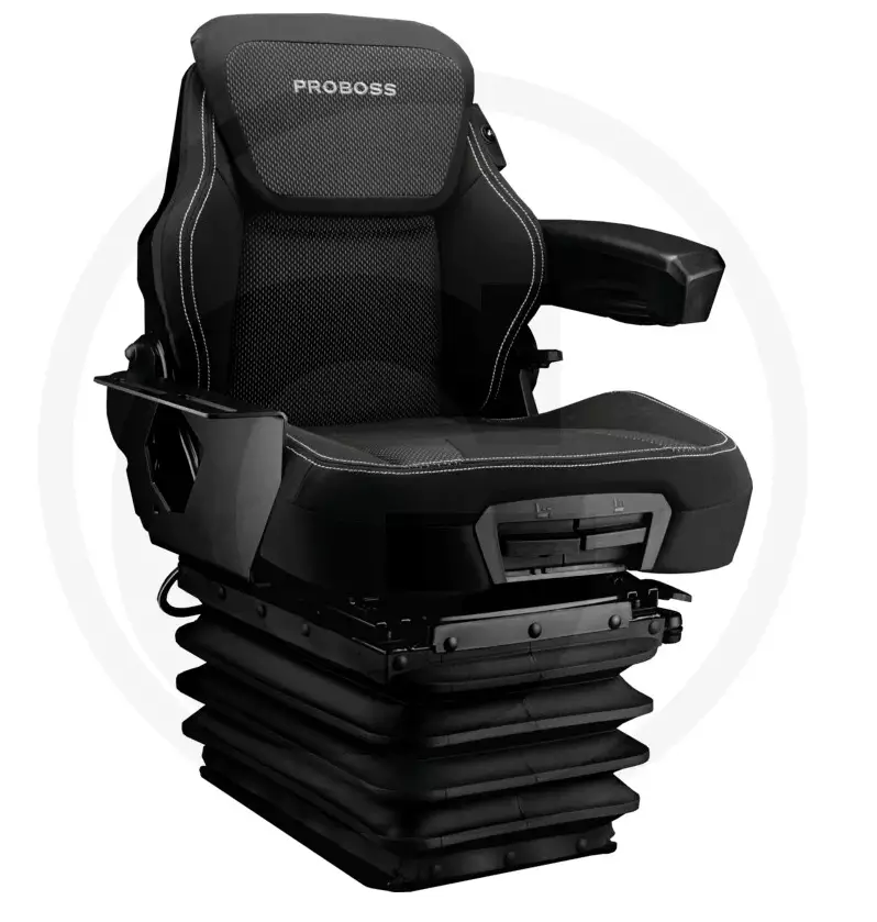 Ytterligare information Kompatibilitet::CNH Spänning (V):12 Typ av klädsel:Tygklädsel Sittkontaktbrytare:Ja Spårvidd (mm):260 Sittbredd (mm):550 Joystick-konsol:Ja Sätesvärme:Ja Säkerhetsbälte-/sele:Valfritt Rotation:Max. 20° åt höger/vänster Höjd (mm):270 - 370 Leveransens innehåll:Leveransen innehåller sittkontaktbrytaren och konsolen för armstödet. Konsolen används för att montera armstödet på den nya stolen. I bilden visas ett passande armstöd med kontrollsystem, ingår inte i leveransen. Tekniska specifikationer:• Sittsäckens bredd 550 mm • Luftfjädring med 12 V kompressor • 12 V Flera nivåer -värme (3-stegs) • Tygklädsel, tvåfärgad med dubbla sömmar • Längsgående fjädring • Steglös höjdjustering • Framåt-bakåt justering • Justering av ryggstödets lutning • Mekaniskt ländryggsstöd • Justerbara Comfort Plus armstöd • Justerbar ryggstödsextension • Rotationsvinkel max. 20° åt höger/vänster • Sittdjup 270–370 mm • Vikt 39,5 kg • Ryggstödet har dokumentfickor • Justering av sittkuddens djup • Justering av sittkuddens lutning • 5-stegs justerbar dämpare Fjädring:Luftfjädring Vikt:54,20 kg