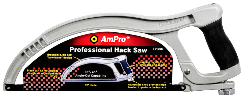 Järnsåg med justerbar bladspänning, vilket garanterar det bästa möjliga sågarbetet, och justerbar sågvinkel (upp till 45°). Sågen har ett gummihandtag som säkerställer ett bekvämt grepp.